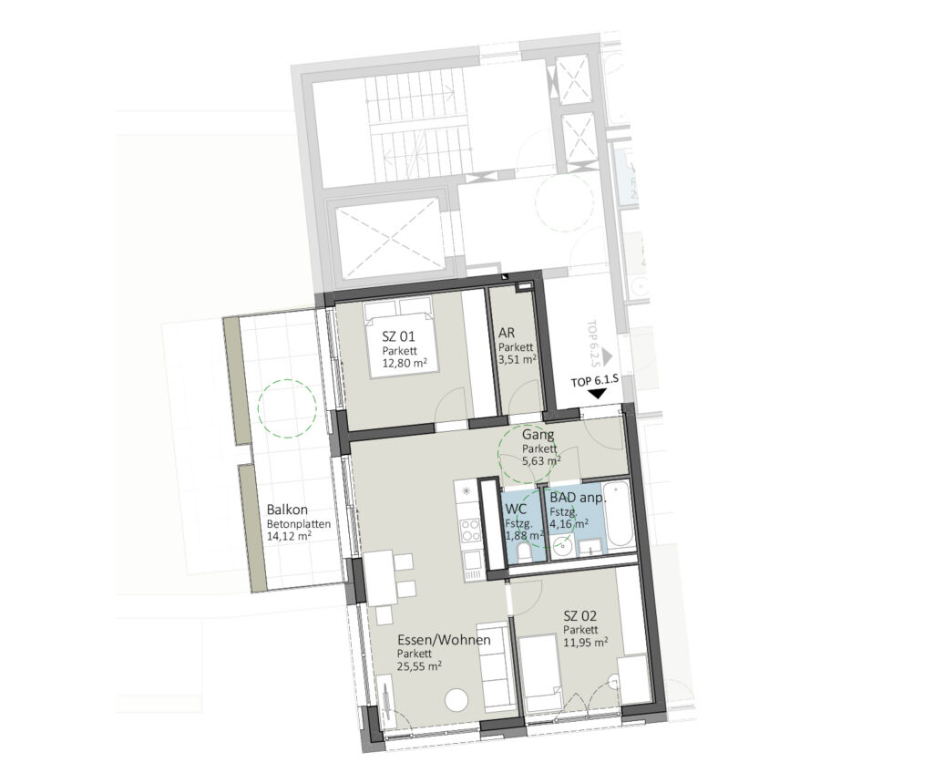 Der Neubau „Am Grünmarkt“ wird nördlich zur Kaarstraße als 6-geschossiger (Nordturm) und südlich zum Grünmarkt als 8-geschossiger Baukörper (Südturm) errichtet. Hier im wunderschönen Urfahr werden 28 Eigentumswohnungen, 2 Büro- bzw. Geschäftsflächen im EG und Tiefgaragenplätze errichtet.